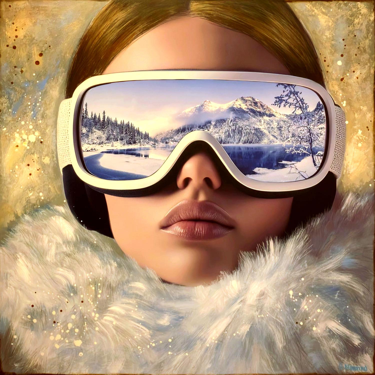 Convinced that an artist must constantly grow and evolve, Novarino unhesitatingly experiments with new techniques and cutting-edge tools. His celebrated Glacial Glam Girls represent the most accomplished synthesis of his bold digital experimentation. In these works, the artist masterfully blends fine-art photography—meticulously detailing hyper-realistic elements like the reflections in sunglass lenses—with sophisticated digital art techniques and manual finishing touches. This layering of technology and artisanal gesture grants his feminine icons a magnetic aura and a unique material depth.