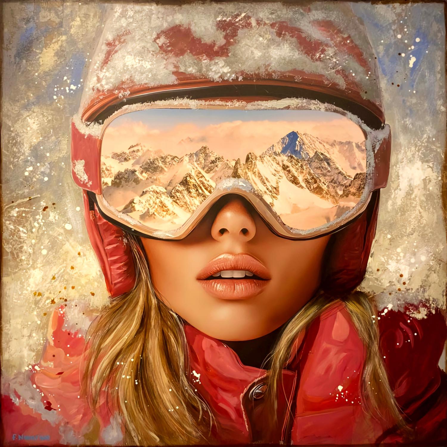 Convinto che un artista debba crescere ed evolversi costantemente, Novarino sperimenta senza esitazioni nuove tecniche e strumenti d’avanguardia. Le celebri Glacial Glam Girls rappresentano la sintesi più compiuta della sua audace sperimentazione digitale. In queste opere, l’artista fonde con maestria la fotografia d’autore — curando dettagli iperrealistici come i riflessi nelle lenti degli occhiali — con sofisticate tecniche di digital art e interventi di finitura manuale. Questa sovrapposizione di tecnologia e gesto artigianale conferisce alle sue icone femminili un’aura magnetica e una profondità materica unica.